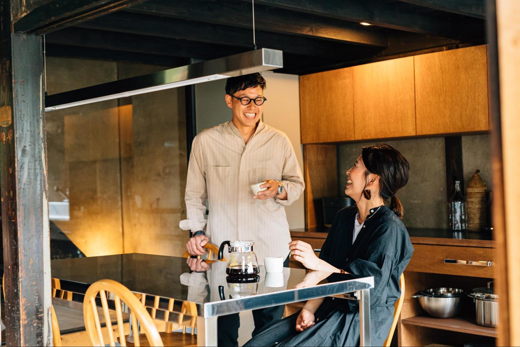 Soft morning light fills the house. Cooking breakfast together becomes part of the travel experience. (A breakfast option is also available.)