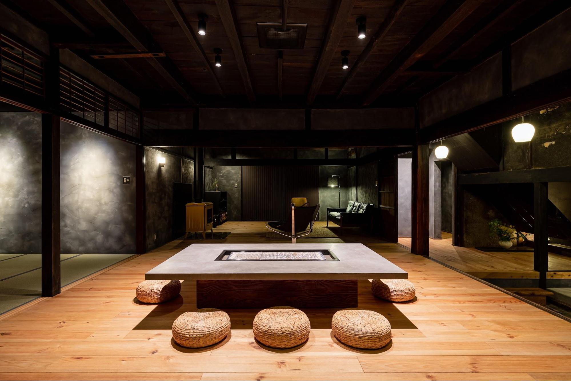 As evening approaches, begin preparing your irori-style dinner at your own pace. This traditional hearth-style meal is arranged for easy and safe family cooking. If your child gets restless, the home theater offers a calm break.