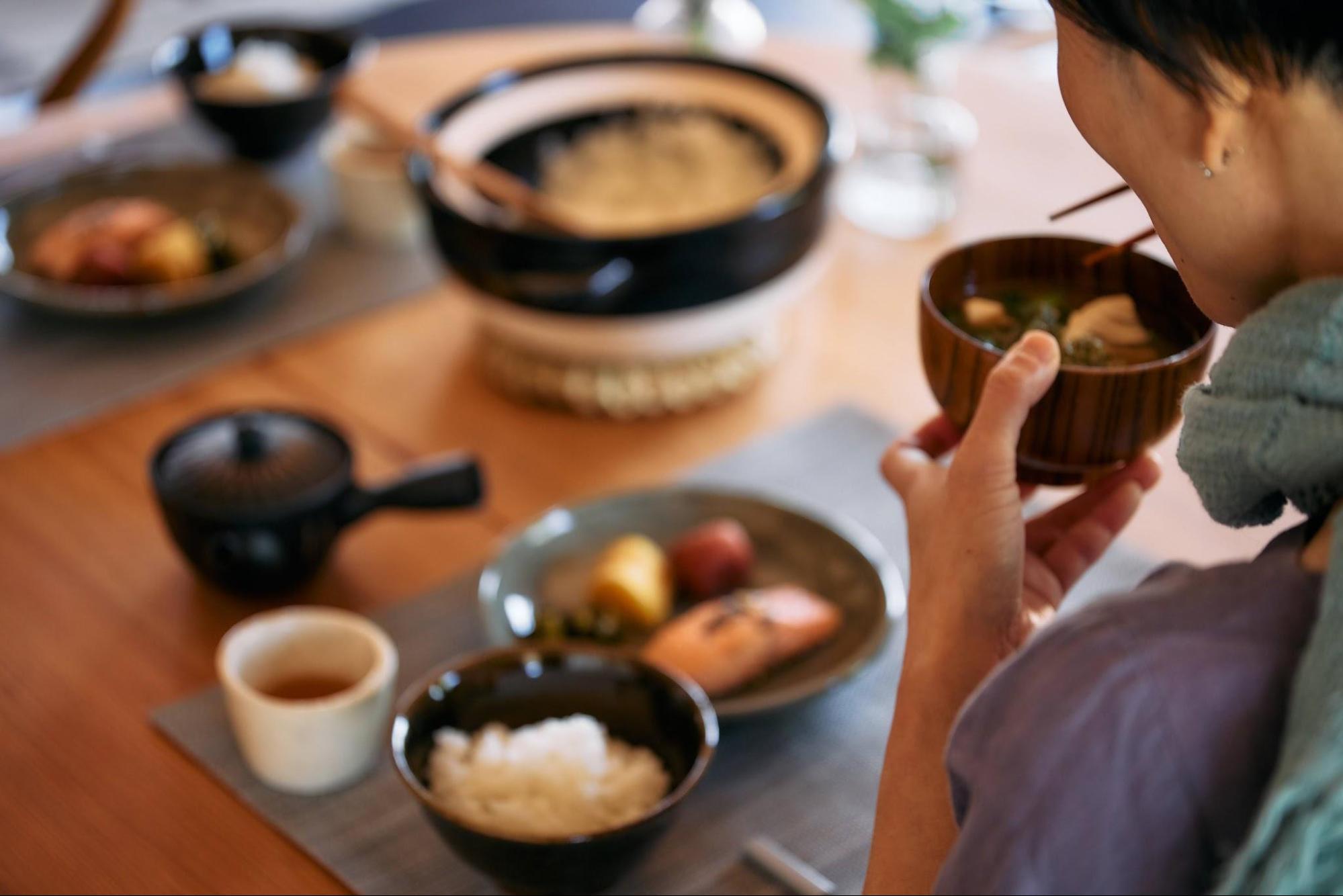 You’ll enjoy warm rice cooked in a donabe pot, miso soup made with local miso,