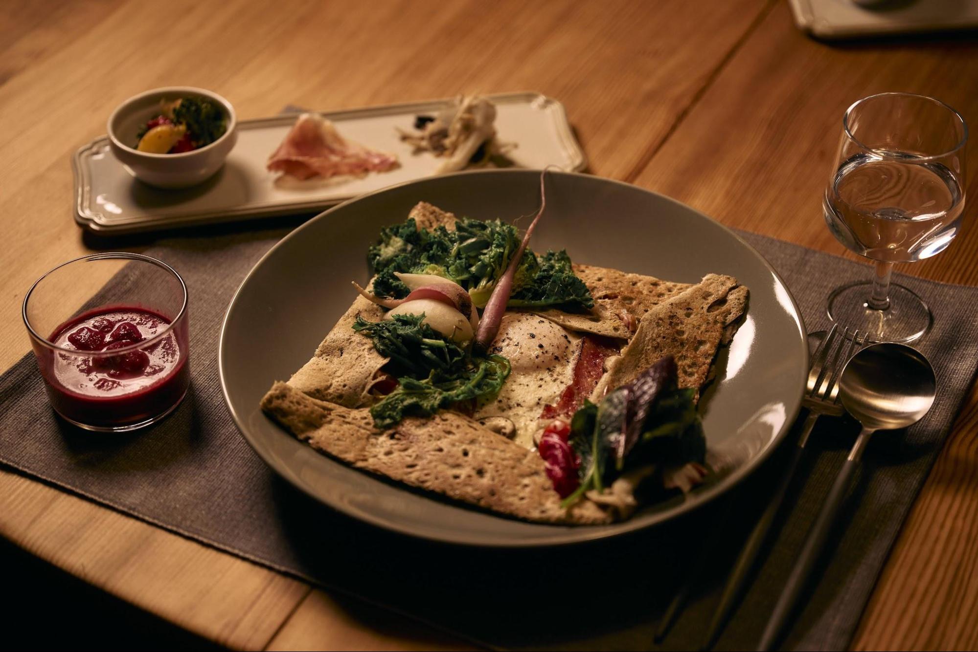 A galette course made with fragrant buckwheat flour.