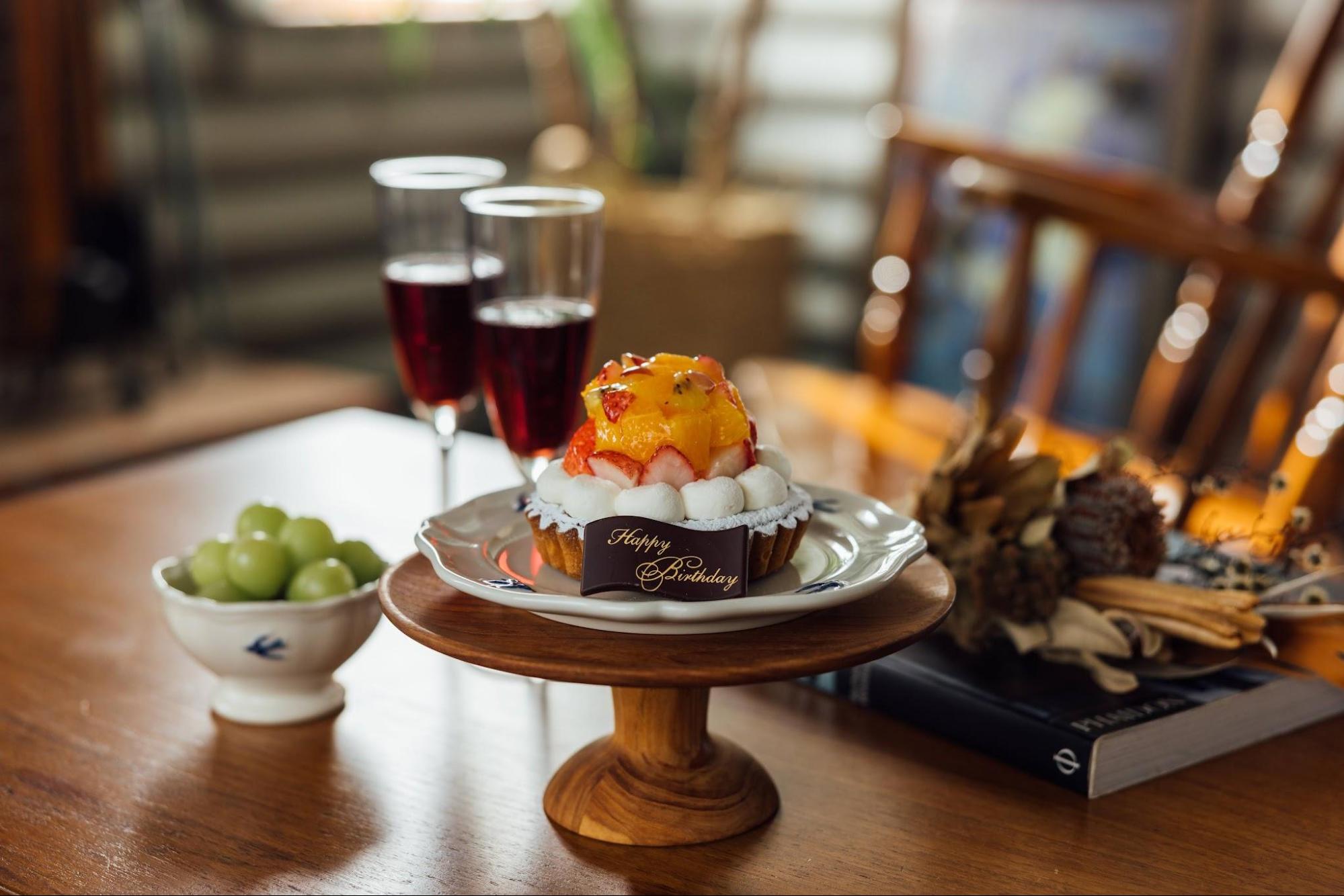 A whole cake with a personalized message for birthdays,