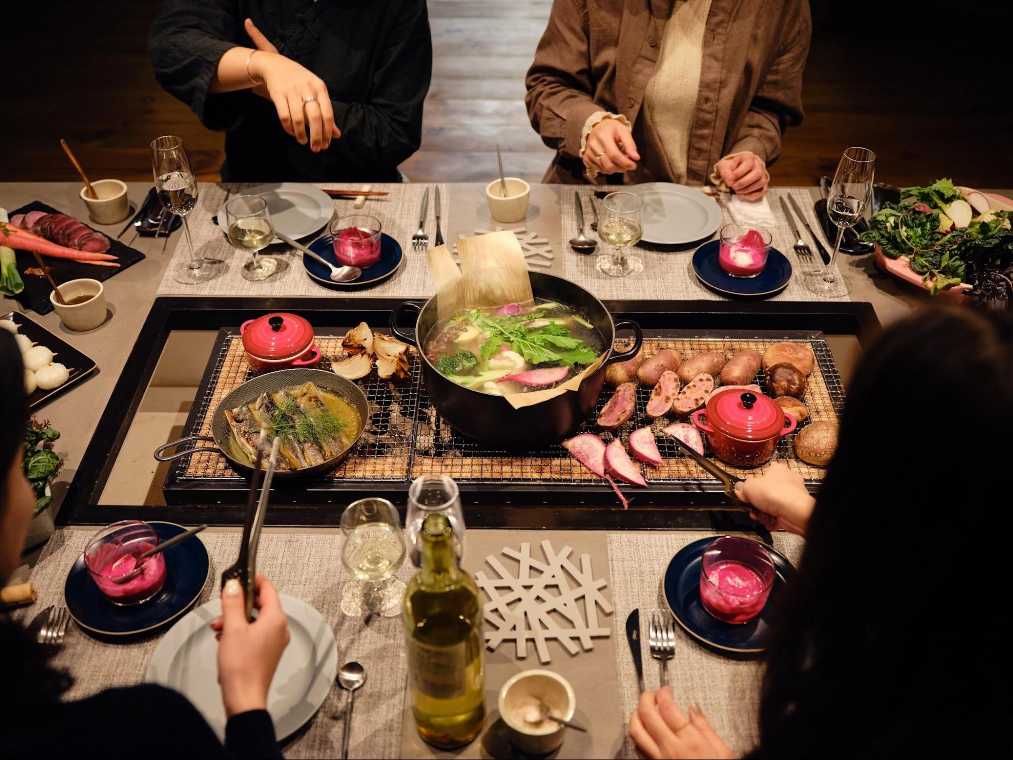 The “Irori Dinner” features seasonal ingredients from the Ina Valley,